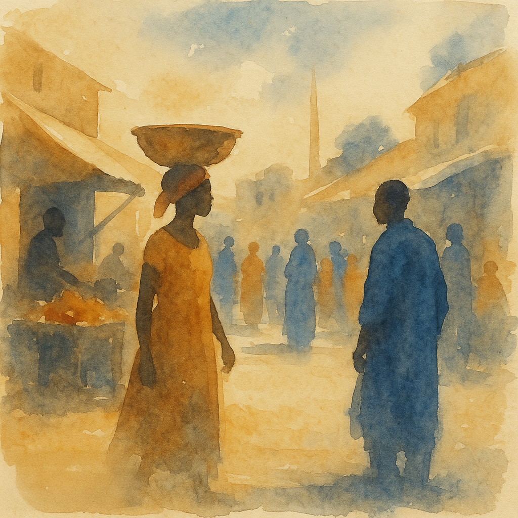 Omar Rimele (n. 1986) es un pintor autodidacta nacido en la costa occidental de África, cuya obra en acuarela ha conquistado galerías y coleccionistas en todo el mundo. Desde temprana edad, Omar encontró en el agua y el pigmento una forma de capturar la luz cambiante de su tierra natal: los amaneceres cálidos, las sombras profundas de los mercados locales y la vibrante energía de su gente.